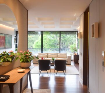 Su principal necesidad se centra en poder satisfacer las diversas dinámicas familiares. Como pareja, necesitan espacios independientes para trabajar. Tienen tres hijos, dos gatos y un perro. Prefieren los espacios abiertos e integrados. El family room es el área designada para compartir en familia. El papá entrena en bicicleta en el apartamento, mientras que la mamá necesita un espacio privado para atender reuniones.